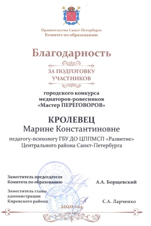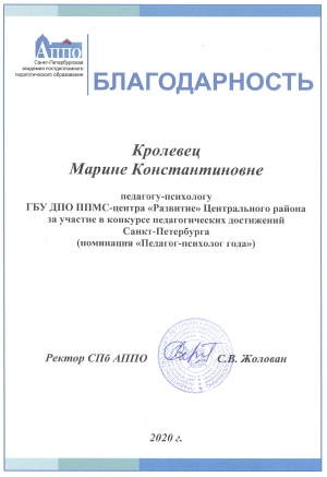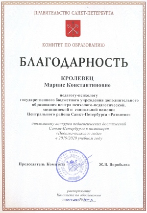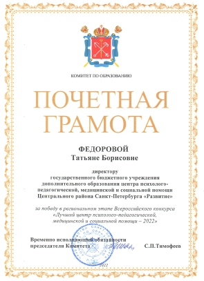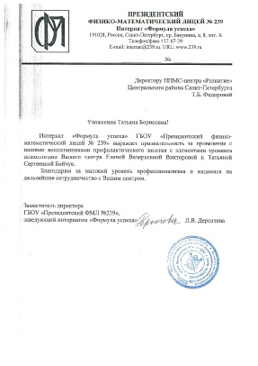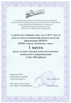 1 место в Санкт-Петербурге среди ППМС-центров.