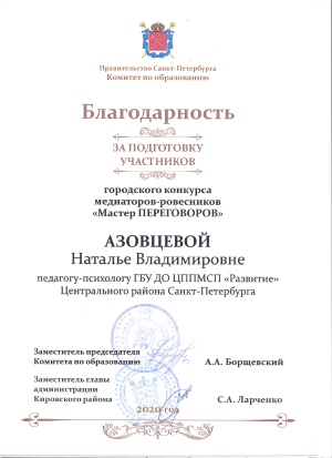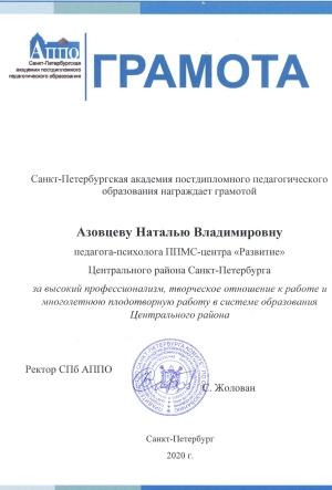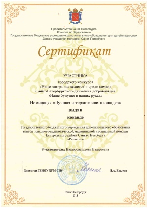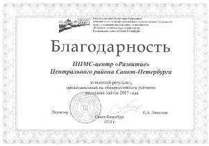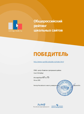 Сайт ППМС-центра «Развитие» Центрального района Санкт-Петербурга стал победителем в номинации «Сайт учреждения дополнительного образования». Итоговый балл 70 из 70.