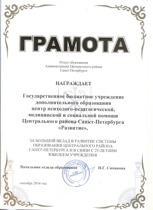 Поздравляем коллектив ППМС-центра «Развитие» Центрального района