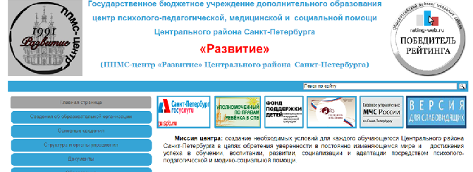 Уже традиционно эксперты выбрали 35 участников рейтинга, которых они дополнительно наградили медалью «Мнение эксперта». Cайт ППМС-центра «Развитие» Центрального района Санкт-Петербурга выбран и награжден медалью cреди образовательных сайтов дополнительного образования России.
