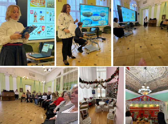Заведующая детского сада Мария Владимировна Сокович рассказала об уникальной истории детского сада, его особенностях и программе культурно-нравственного и эстетического воспитания. Педагоги Эрмитажного детского сада представили опыт работы с детьми и родителями, особенностях взаимодействия, привели примеры активного участия родителей в жизни детского сада, в частности Родительского клуба. Также педагоги провели увлекательную экскурсию по прекрасным старинным помещениям сада, каждая группа которого представлена в тематике разнообразных исторических и культурных эпох.