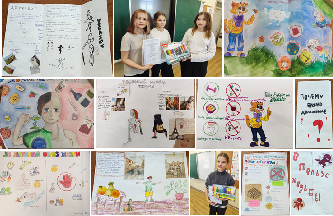 Учащиеся 1а и 1б классов, выполняли задания командами, находили полезные и неполезные для здоровья продукты, узнавали какие привычки приносят пользу здоровью. Вспомнили о важности соблюдения правил безопасного поведения на улице, раскрашивали знаки дорожного движения, которые помогают безопасно чувствовать себя на улице и дороге.