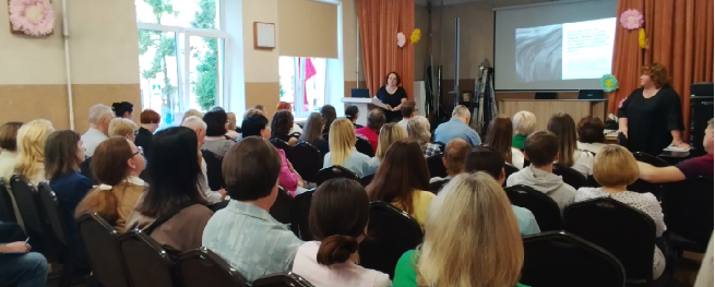 Перед коллегами выступили педагоги-психологи ППМС-центра «Развитие» М.К. Кролевец и Е.С. Шевчук с темой: «Как сплотить коллектив: идеи, рекомендации по сплочению класса». Выступающие представили варианты проведения родительских собраний, конкретные игры для школьников на определение собственных границ и границ окружающих, рассказали о возможных вариантах работы с родителями, детьми и педагогами. Все специалисты отметили важность данной темы, актуальность и практическую значимость для своей профессиональной деятельности.